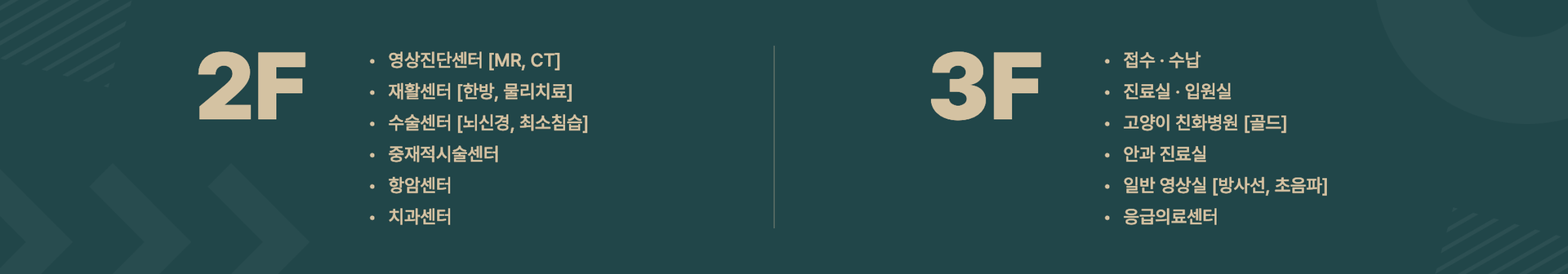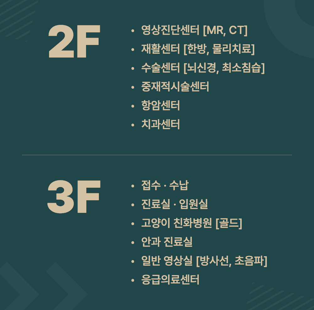 외과, 내과, 영상의학과, 안과, 재활과, 응급진료과 등 심도 있는 협진을 통해 수준 높은 의료 서비스를 약속드립니다.